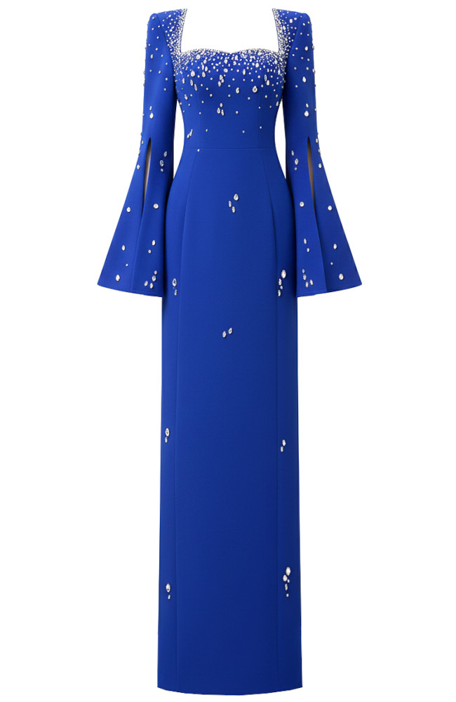 Cape Sleeve Crystal Maxi Dress Blue