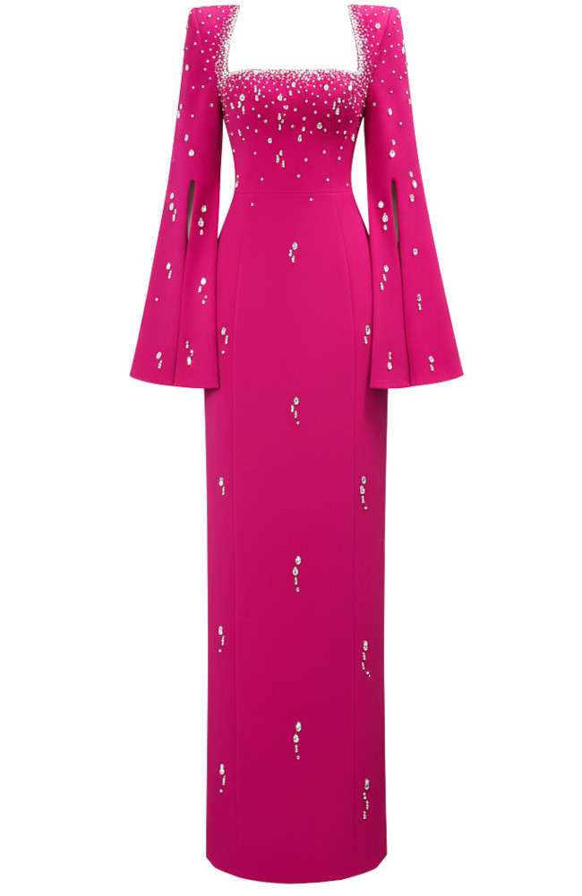 Cape Sleeve Crystal Maxi Dress Hot Pink