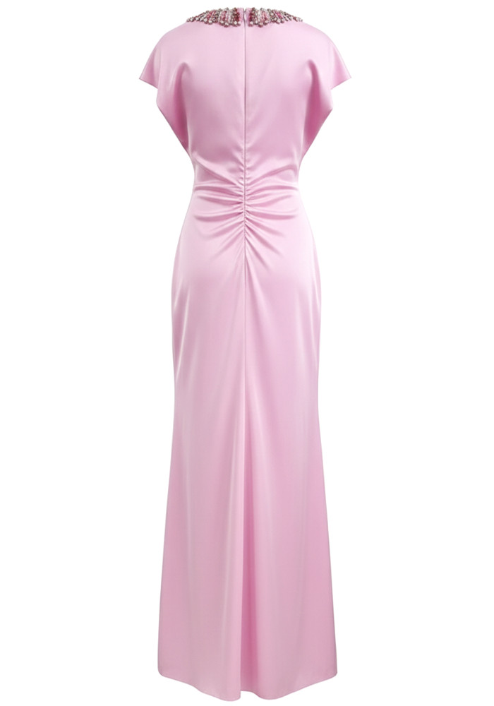 Crystal Collar A Line Maxi Dress Pink