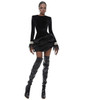 Crystal Feather Long Sleeve Ruffle Dress Black
