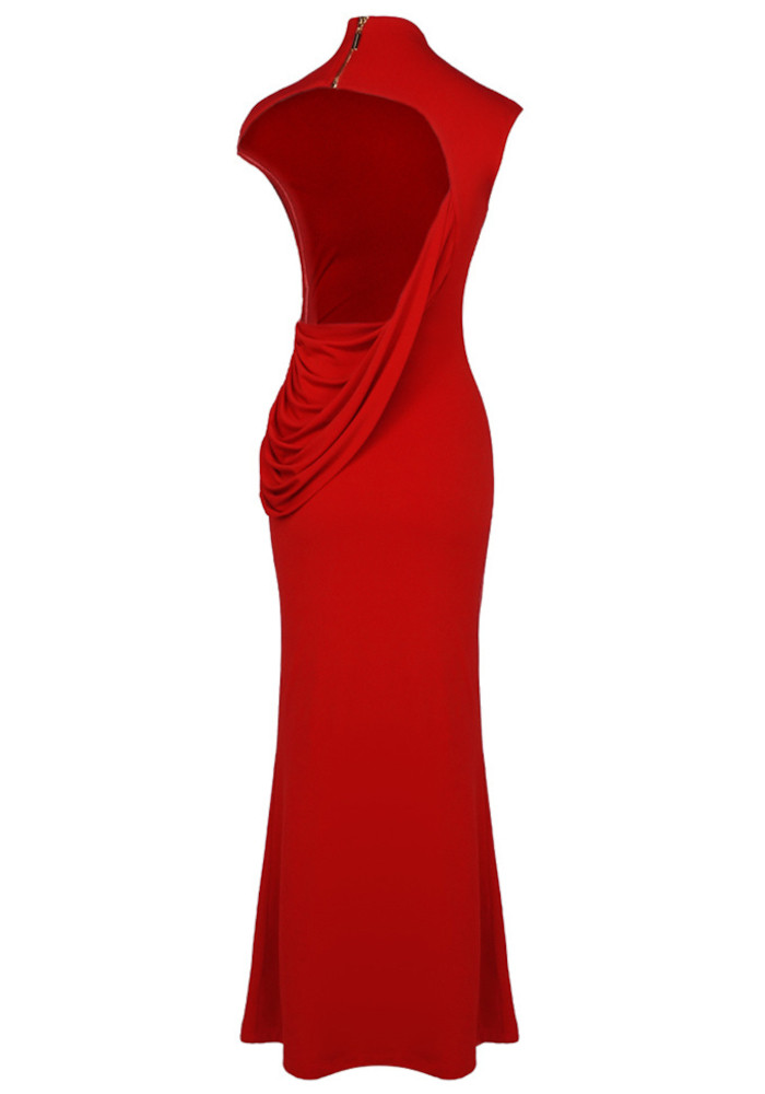 Draped Backless Maxi Dress Red