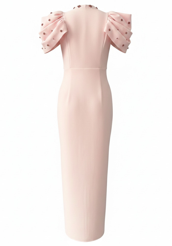 Draped Short Sleeve Crystal Maxi Dress Pink