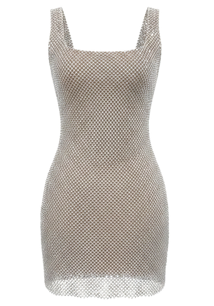 Embellished Backless Dress Silver