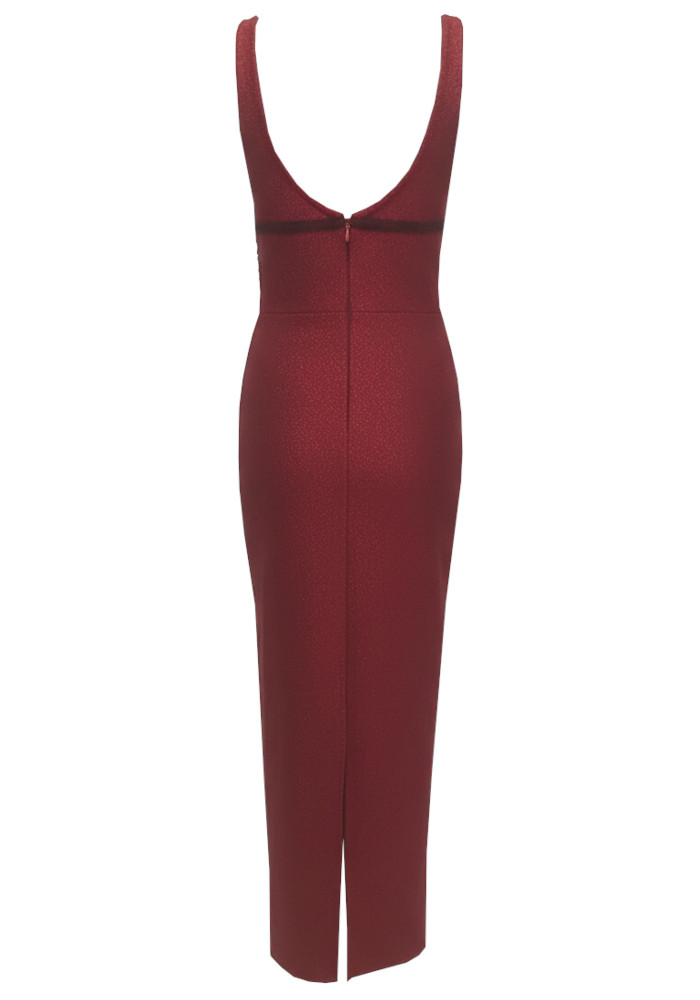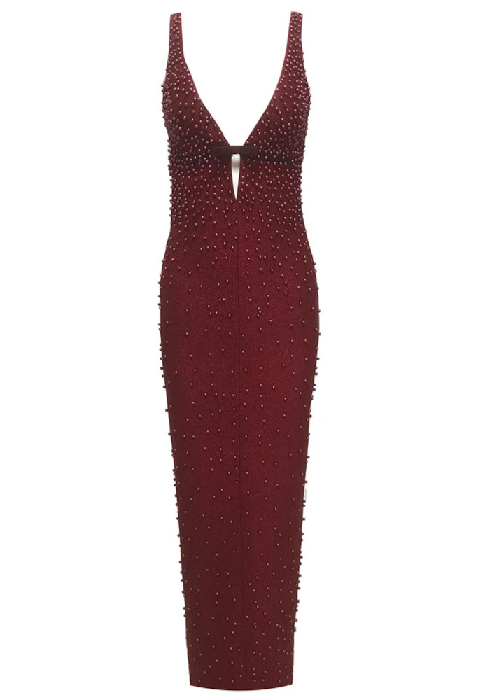 Embellished Plunge V Neck Maxi Dress Burgundy