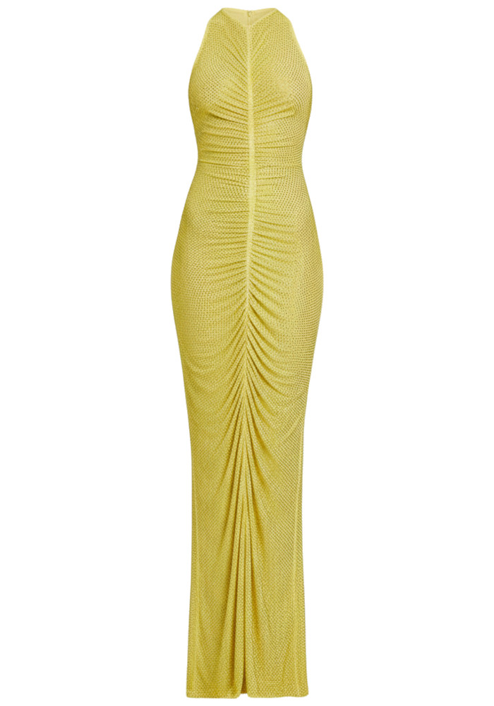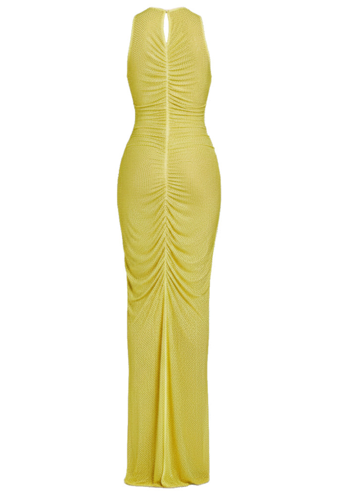 Embellished Ruched Maxi Dress Yellow
