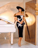 Floral Lace Midi Dress Black White