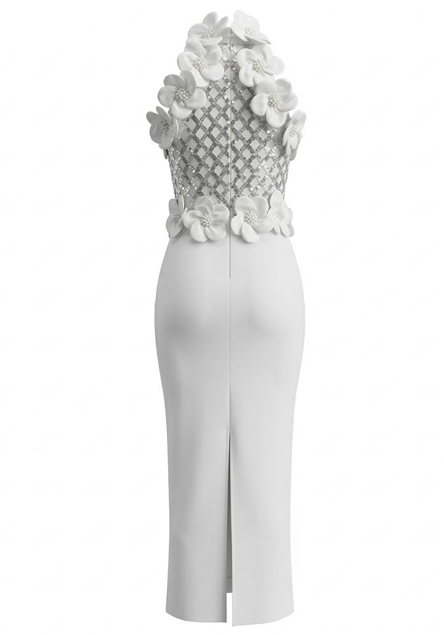 Floral Sequin Maxi Dress White