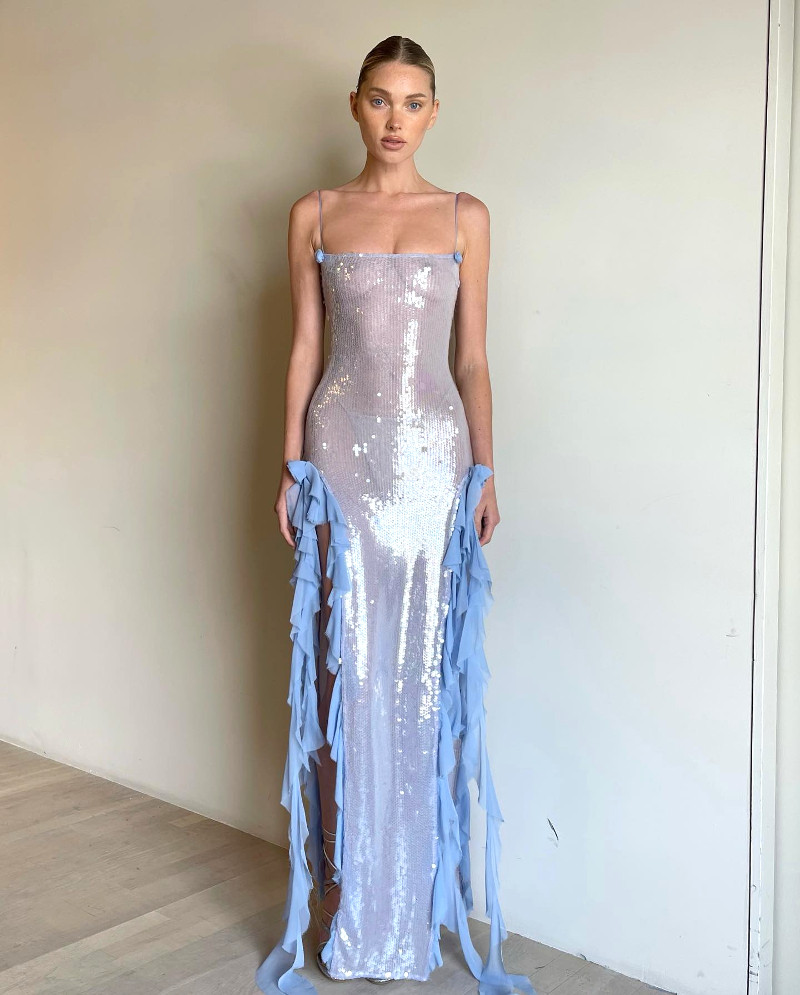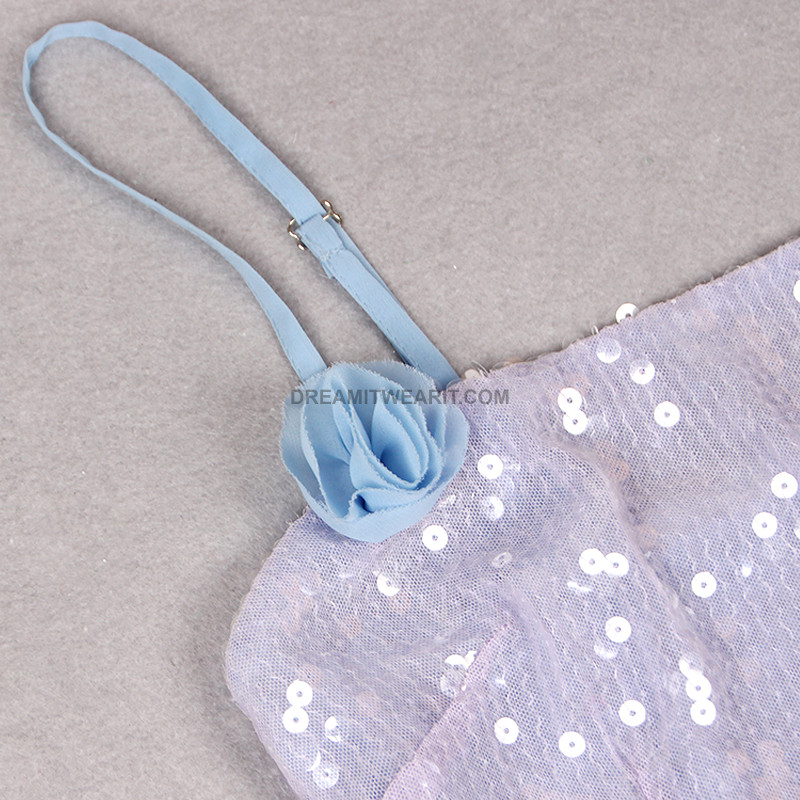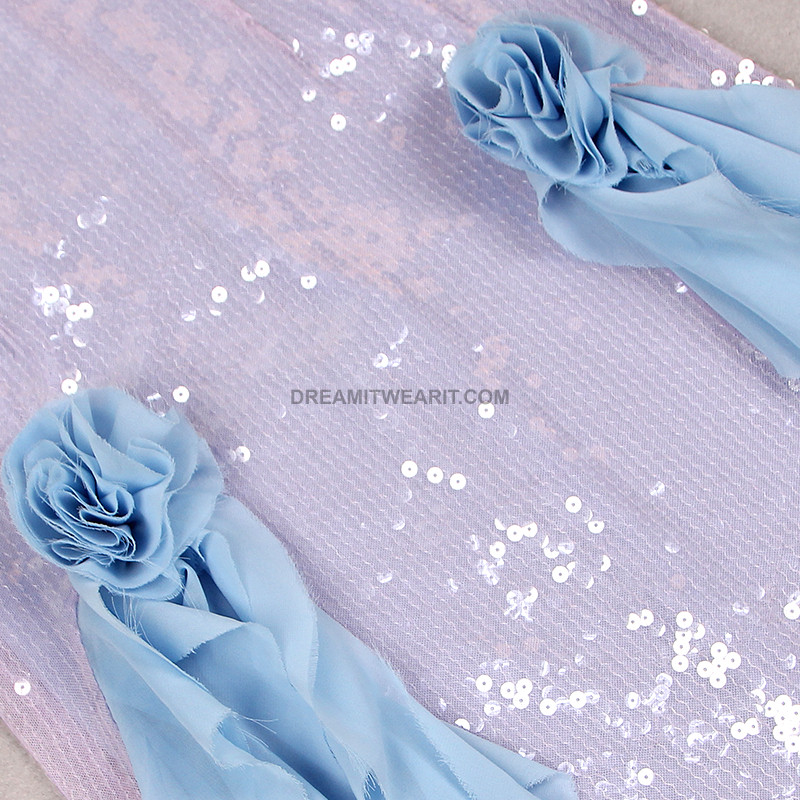 Flower Ruffle Detail Sequin Maxi Dress Silver Blue
