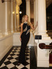 Halter Crystal Maxi Velvet Dress Black