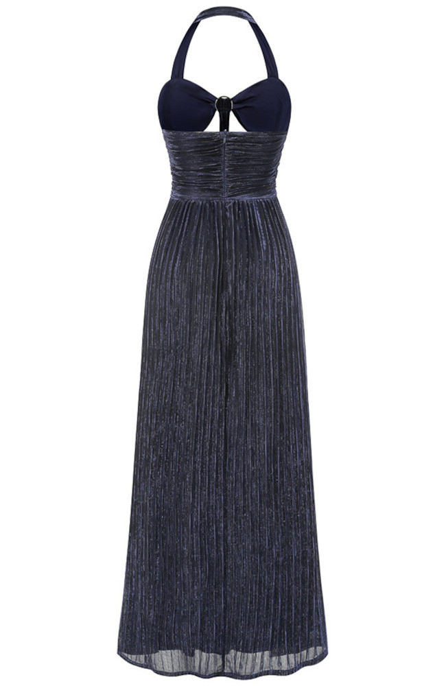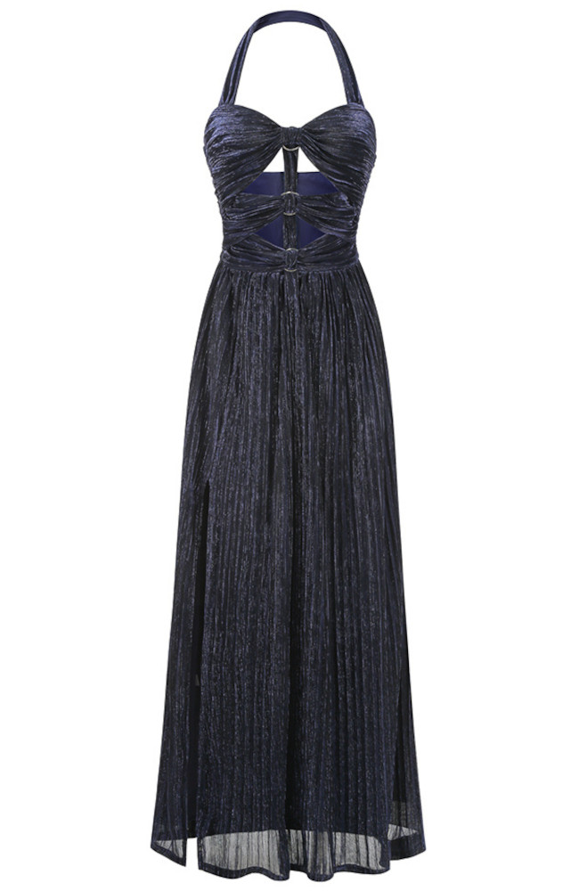 Halter Cut Out Detail A Line Maxi Dress Navy Blue
