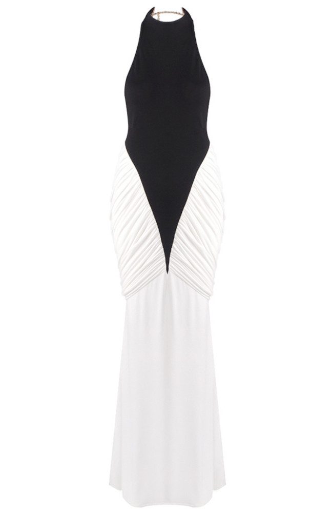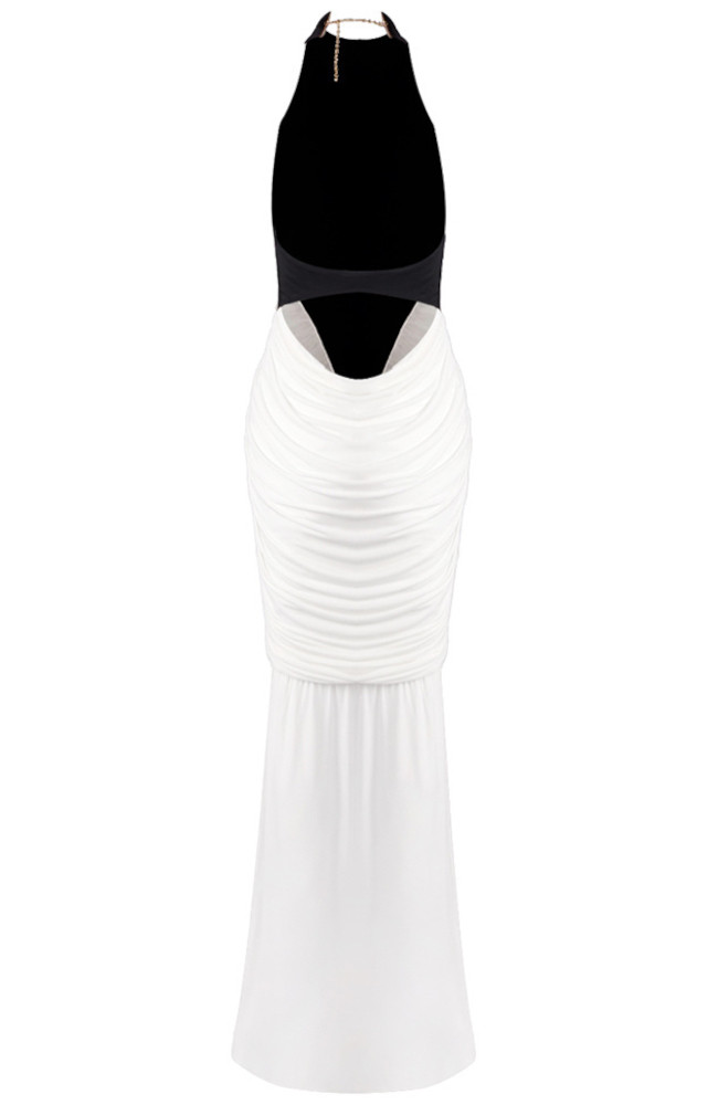 Halter Draped Detail Maxi Dress Black White