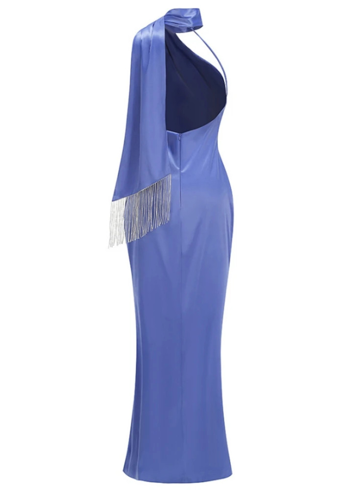Halter Scarf Maxi Dress Blue