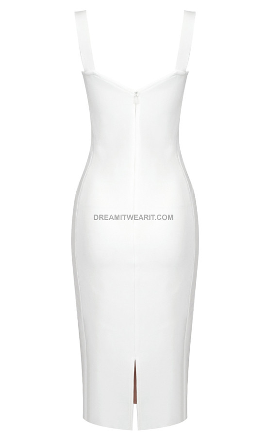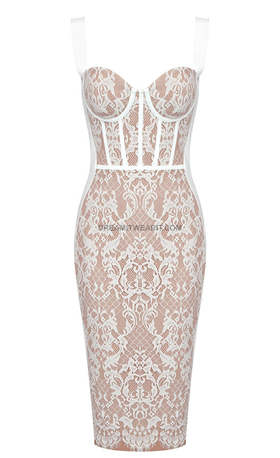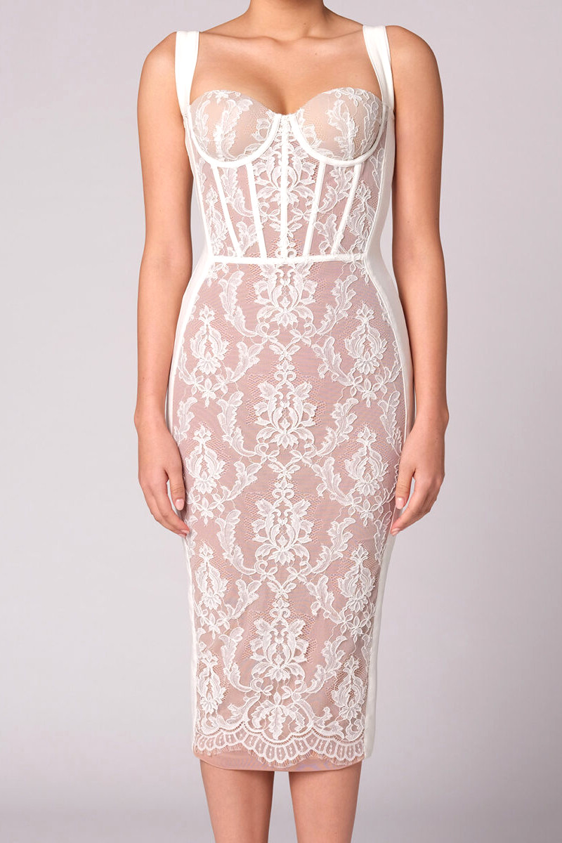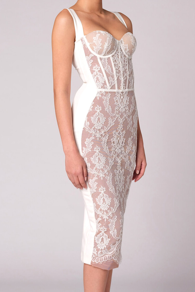 Lace Insert Bustier Midi Dress White