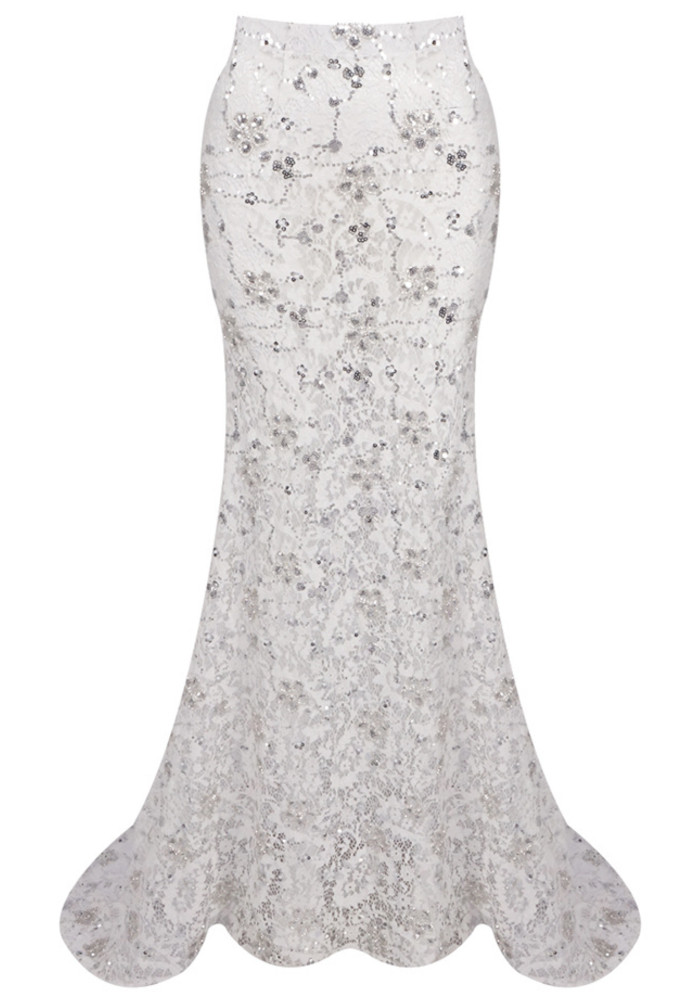 Lace Mermaid Maxi Skirt White