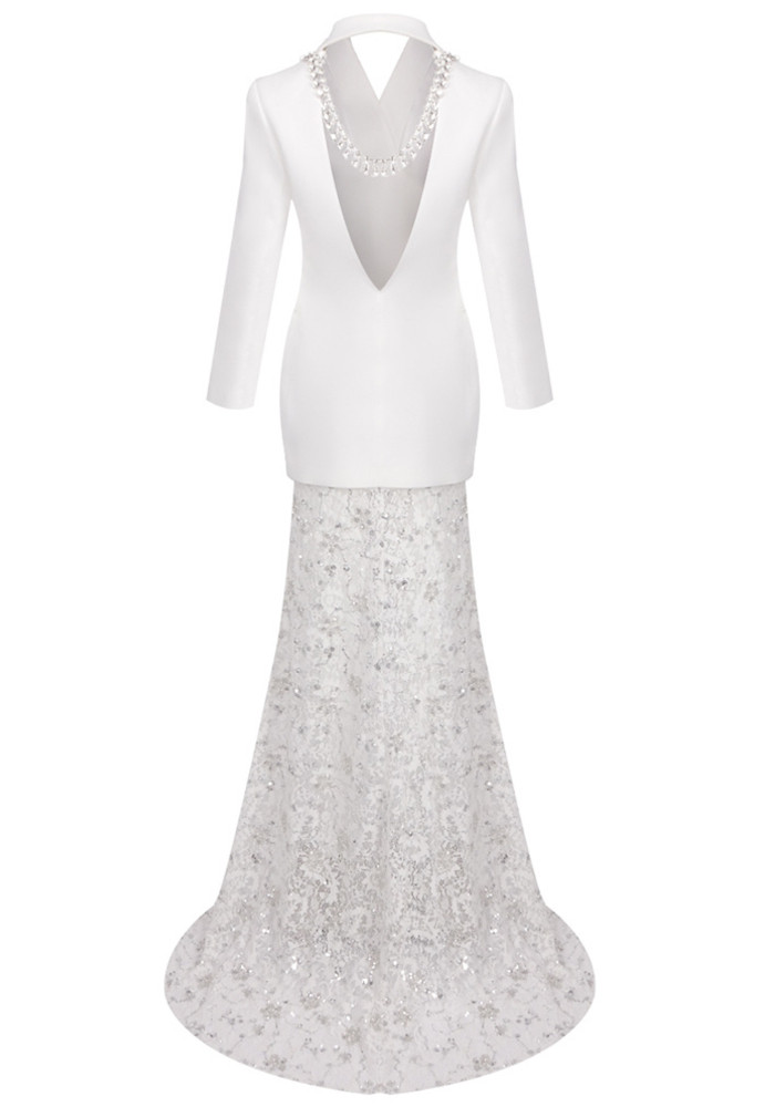 Long Sleeve Blazer Lace Maxi Two Piece Dress White