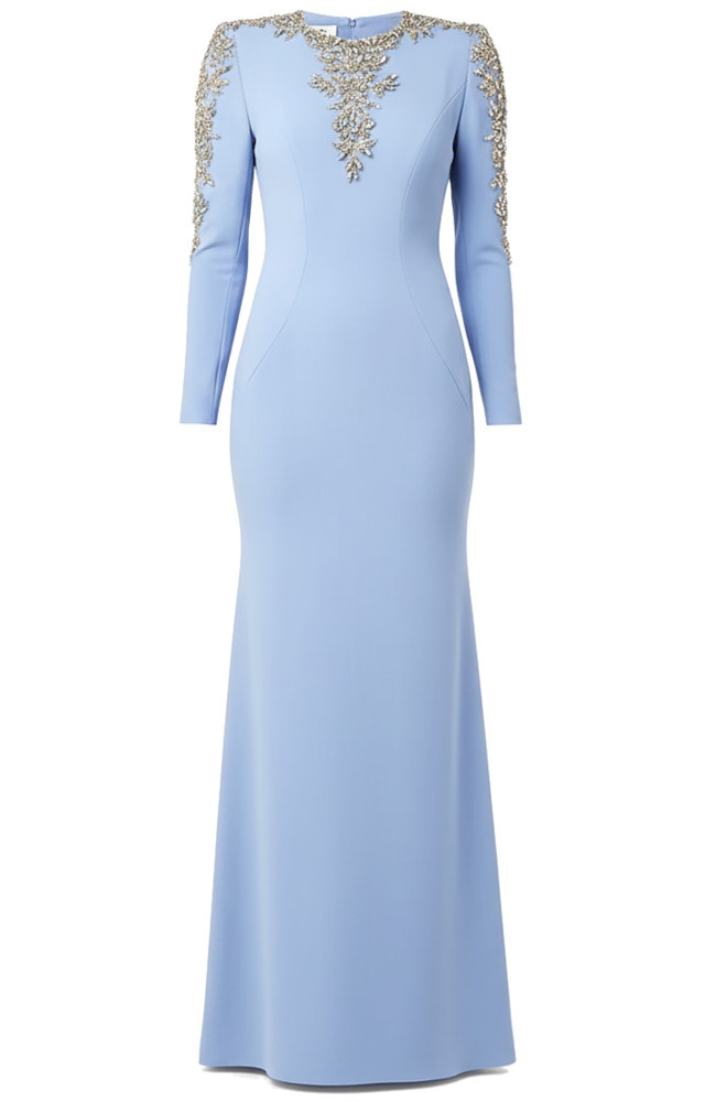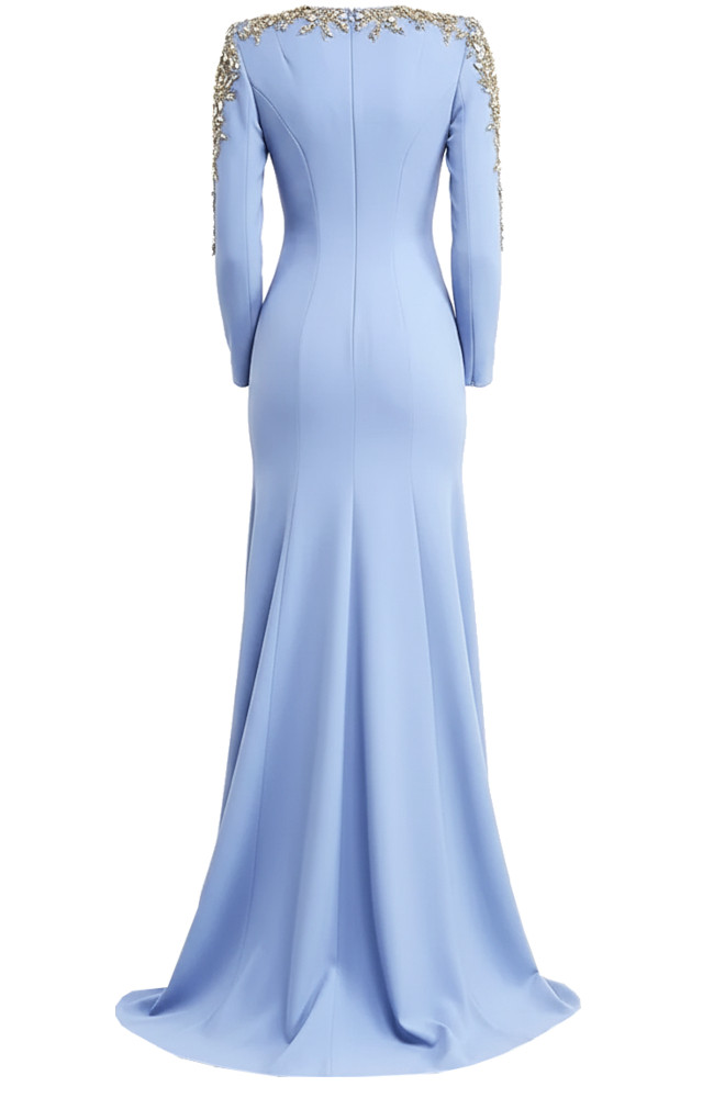 Long Sleeve Crystal Embellished Maxi Dress Blue