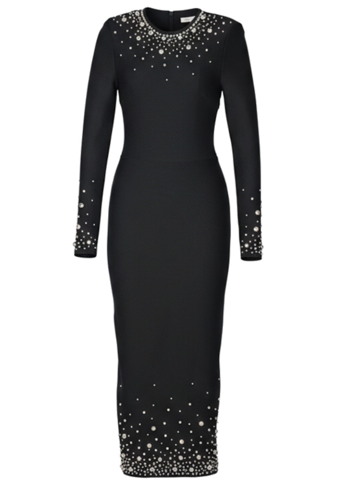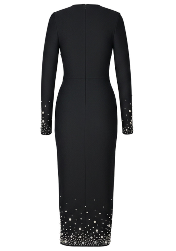 Long Sleeve Crystal Midi Dress Black