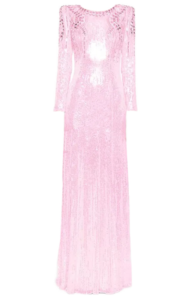 Long Sleeve Crystal Sequin Maxi Dress Pink