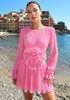 Long Sleeve Floral Detail Backless Dress Hot Pink