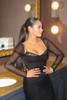 Long Sleeve Lace Mesh Corset Maxi Dress Black