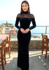 Long Sleeve Mesh Insert Maxi Velvet Dress Black