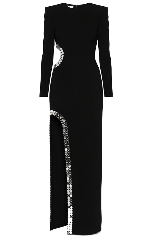 Long Sleeve Mirrored Trim Maxi Dress Black