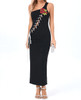 One Shoulder Floral Lace Up Maxi Dress Black