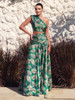 One Shoulder Floral Two Piece Maxi Dress Green