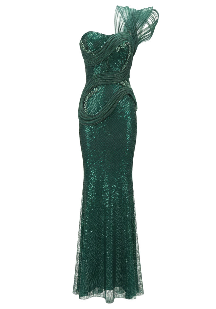 One Shoulder Sparkly Maxi Dress Green