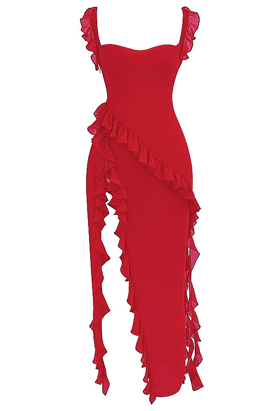 Ruffle Detail Maxi Dress Red