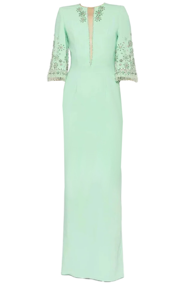 Short Sleeve Crystal Maxi Dress Green