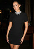 Short Sleeve Crystal Neck Dress Black