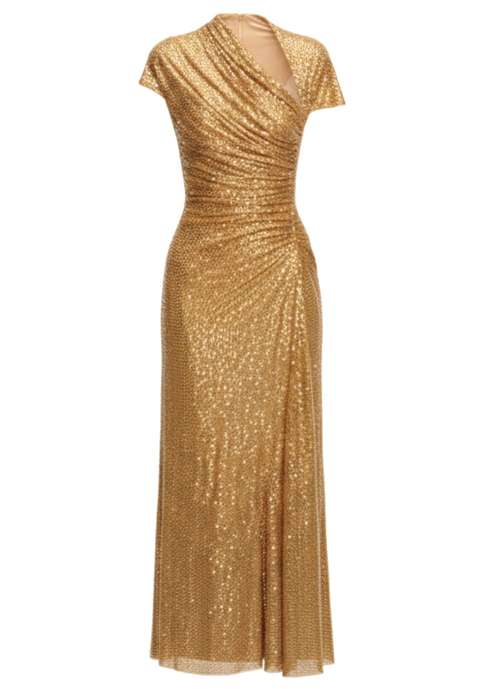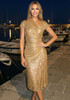 Short Sleeve Draped Sparkly Midi Dress Gold