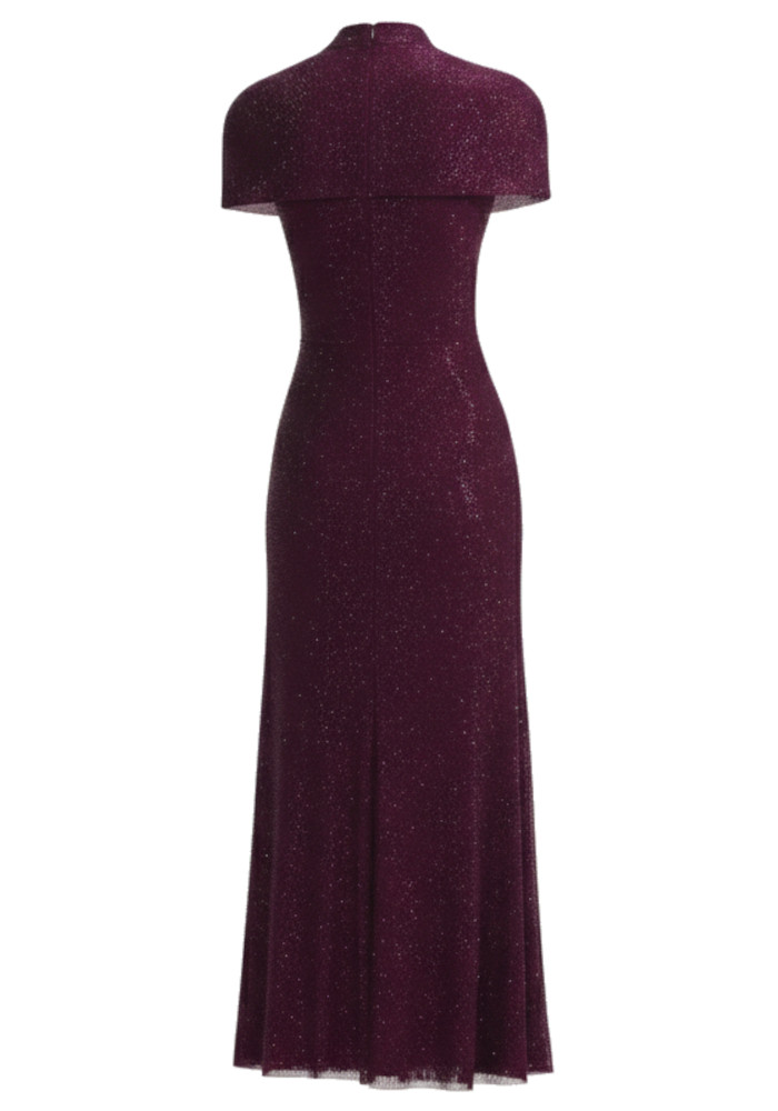 Short Sleeve Sparkly A Line Midi Dress Burgundy
