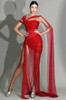 Sparkly Draped Maxi Dress Red
