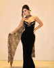 Strapless Animal Print Bustier Maxi Velvet Dress Black