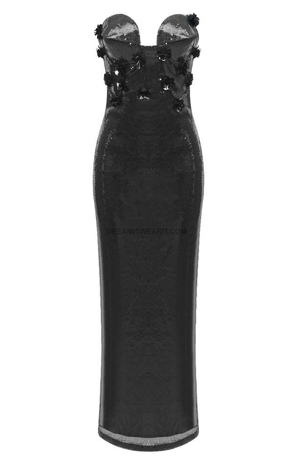 Strapless Bustier Detail Sequin Maxi Dress Black