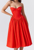 Strapless Bustier Pleated A Line Midi Dress Red