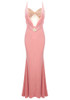 Strapless Crystal Bustier Maxi Velvet Dress Pink