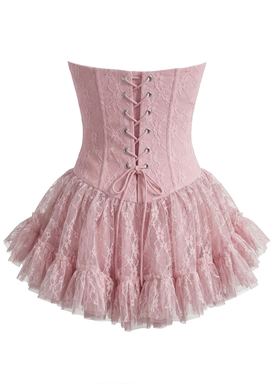 Strapless Draped Bustier Lace A Line Corset Dress Pink