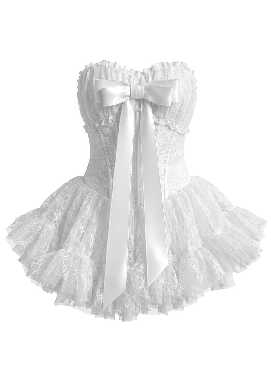 Strapless Draped Bustier Lace A Line Corset Dress White