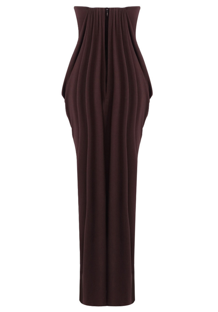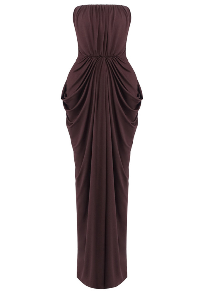 Strapless Draped Maxi Dress Brown