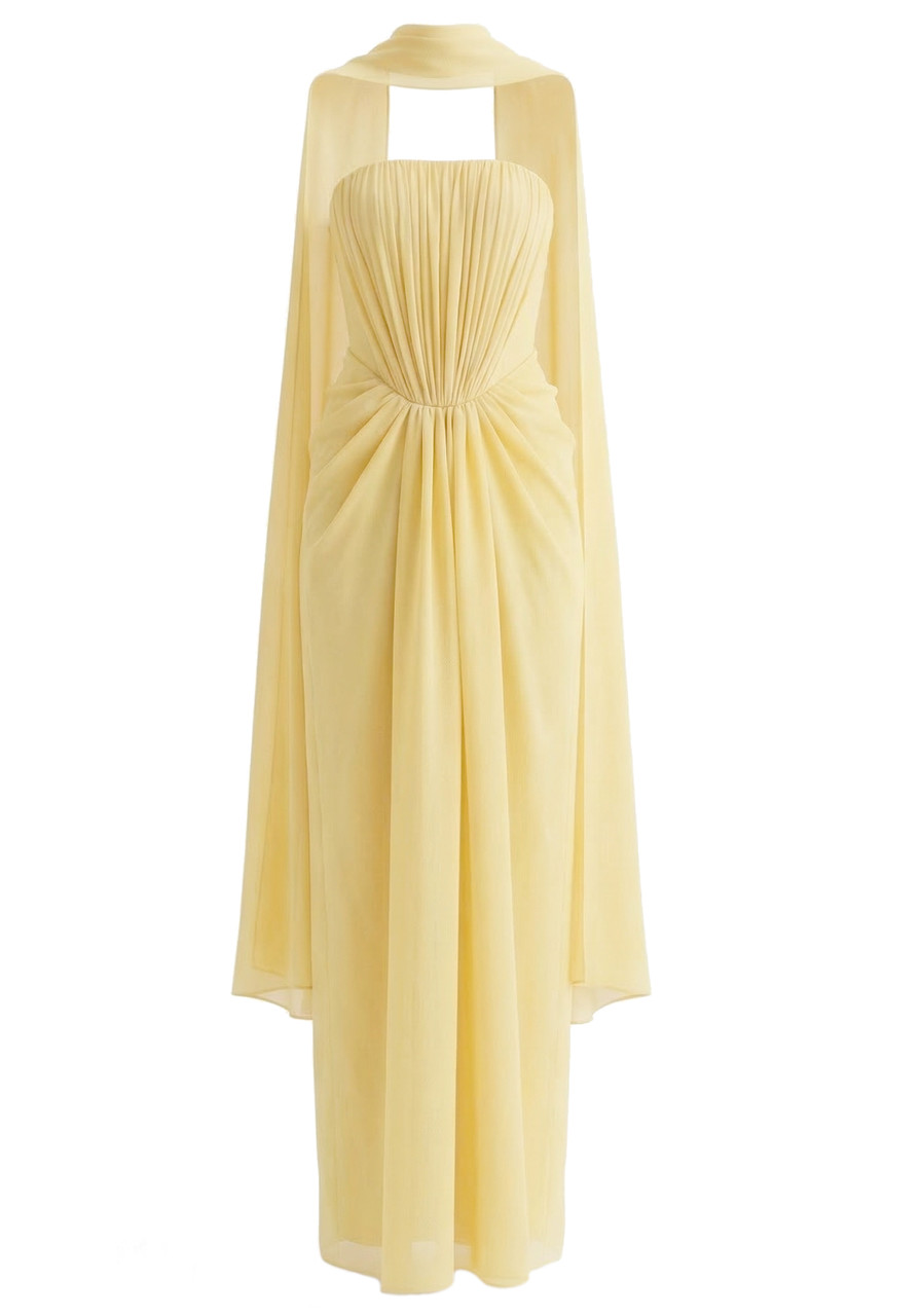 Strapless Draped Maxi Dress Yellow