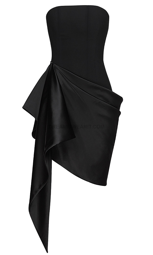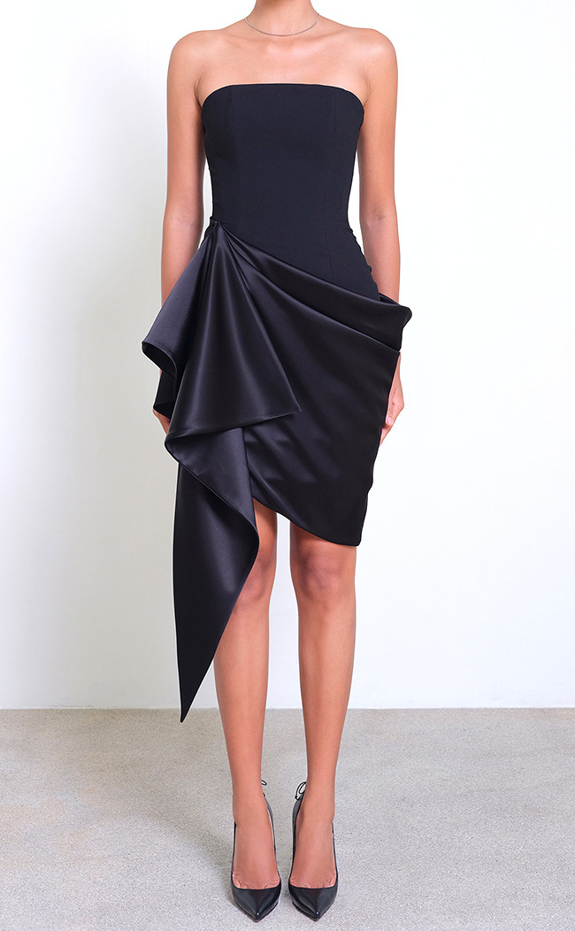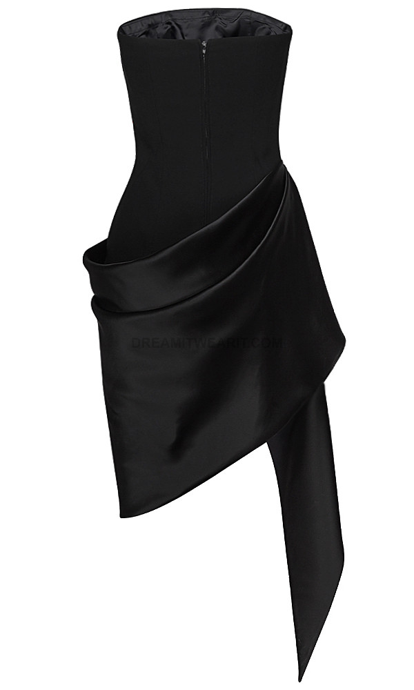 Strapless Draped Silk Dress Black