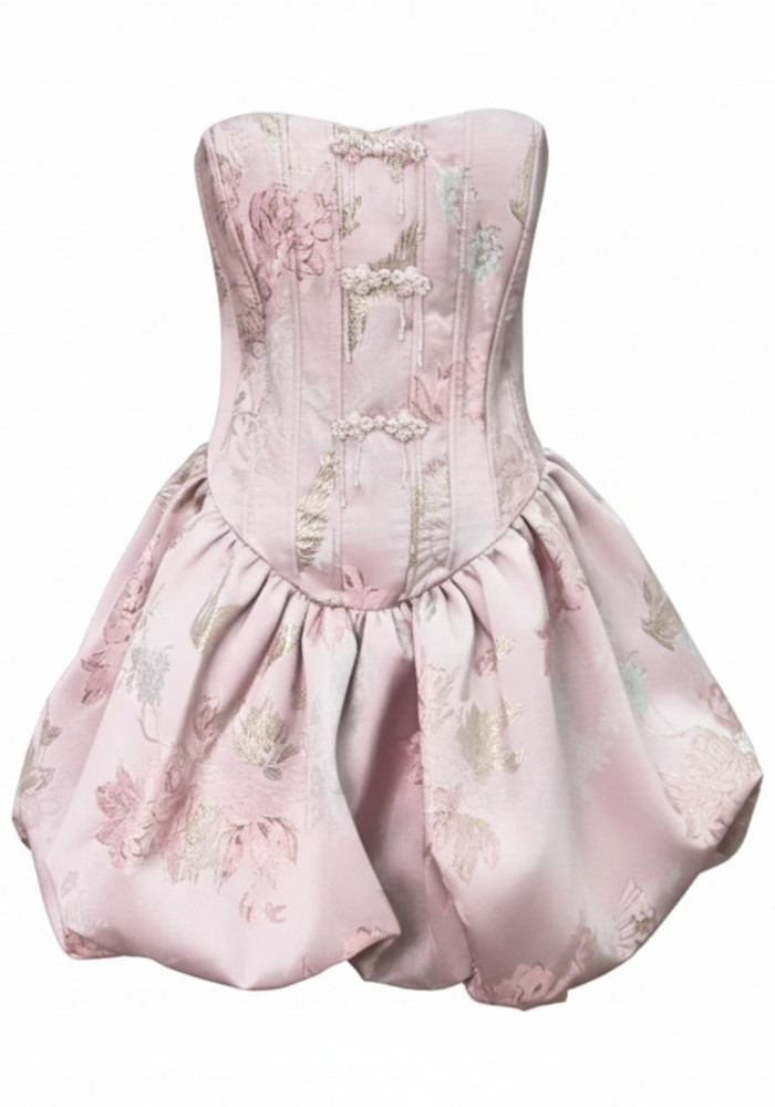 Strapless Floral Bubble Corset Dress Pink