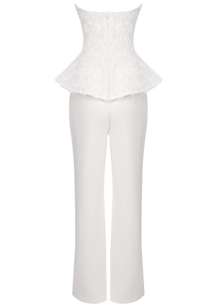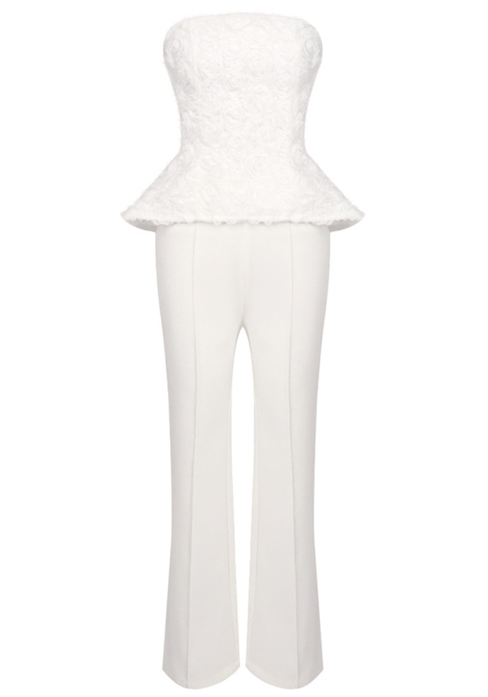 Strapless Floral Peplum Two Piece Jumpsuit White