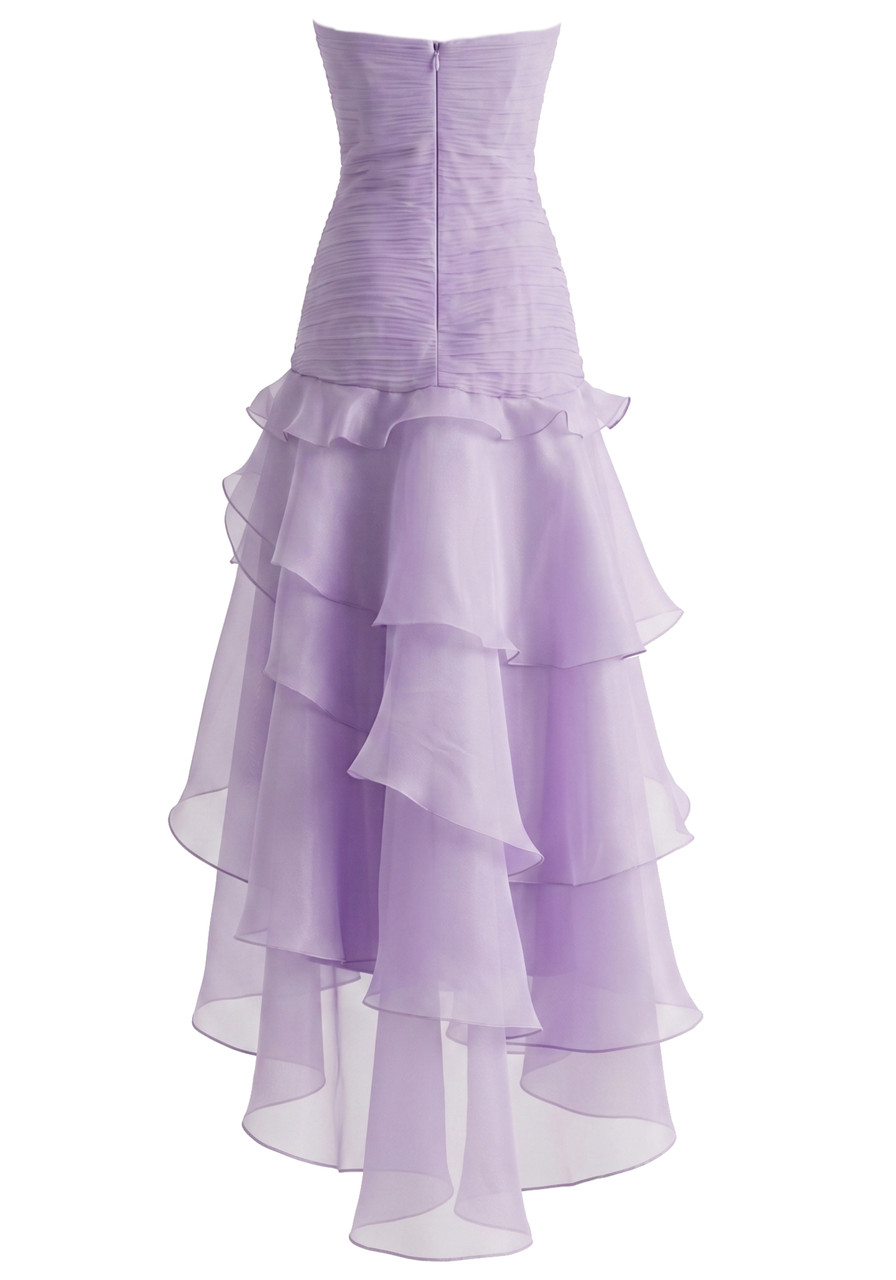 Strapless Floral Ruffle Maxi Dress Lavender