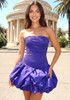Strapless Ruched Puff Dress Blue