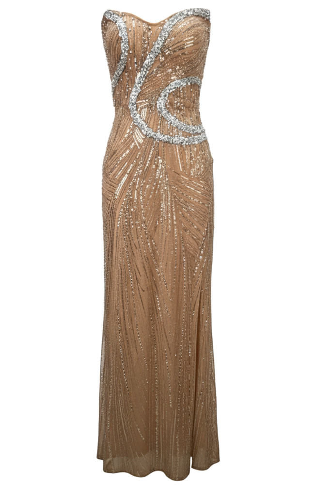 Strapless Sequin Maxi Dress Caramel