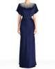 Embellished Cape Detail Maxi Dress Navy Blue